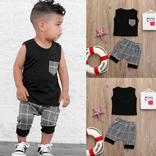 2020 2018 Summer Infant Baby Boys Clothes Set Kids Sleeveless Tops