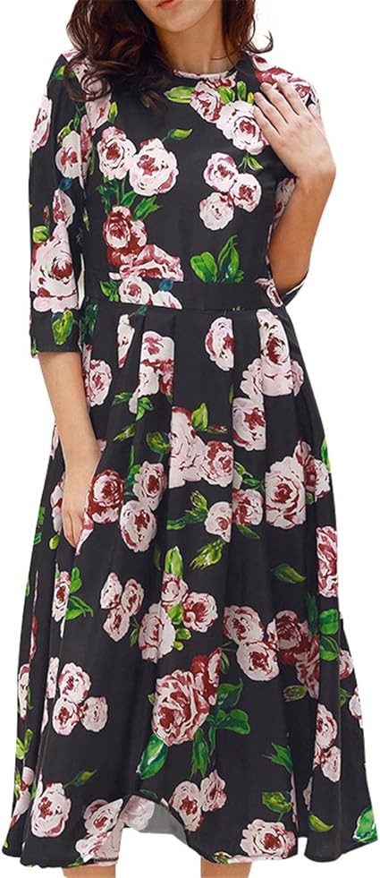 Amazon Com New Women Summer Midi Dress Bohemian 3 4 Sleeve High