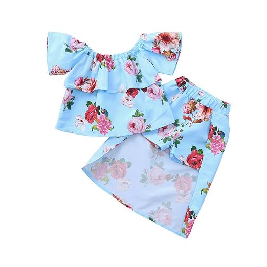 Amazon Com Baby Toddler Girls Summer Clothes Set For 2 7 Years Old Kids Off Shoulder Shirt Top Flower Skirt Headband Outfit Clothing