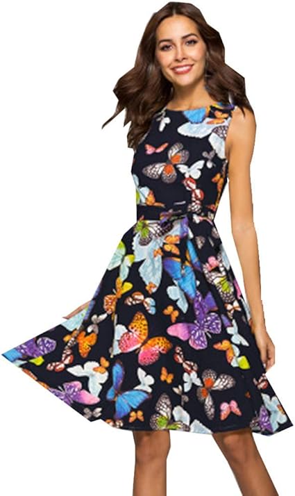 Zodof Dresses Women Butterfly Print Sleeveless Fashion Dresses