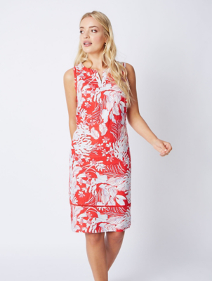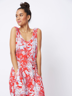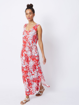 Red Hibiscus Floral Linen Blend Midi Dress Women George