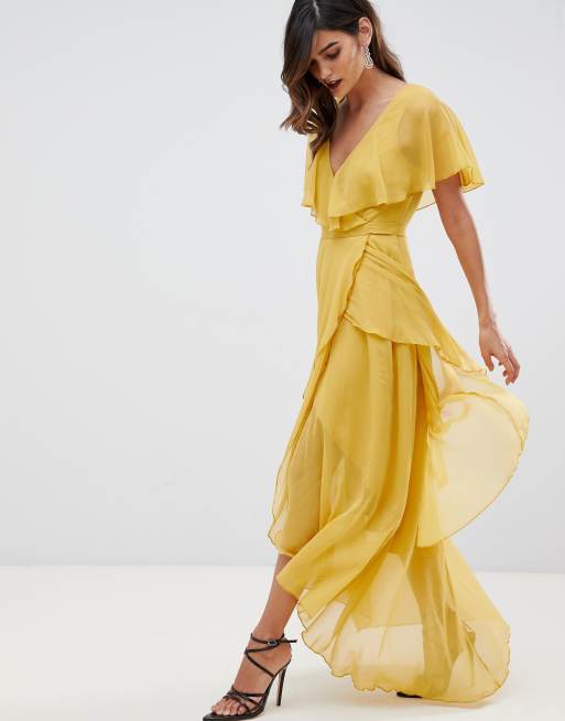 Asos Summer Beach Flowy Maxi Dress In Sunshine Yellow Mustard