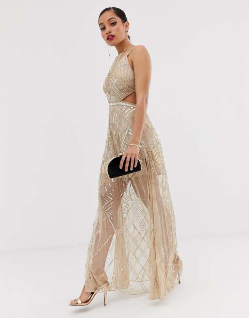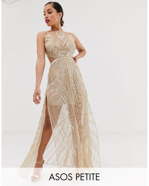 Asos Design Petite Maxi Dress With Cut Outs In Heavy Embellishment