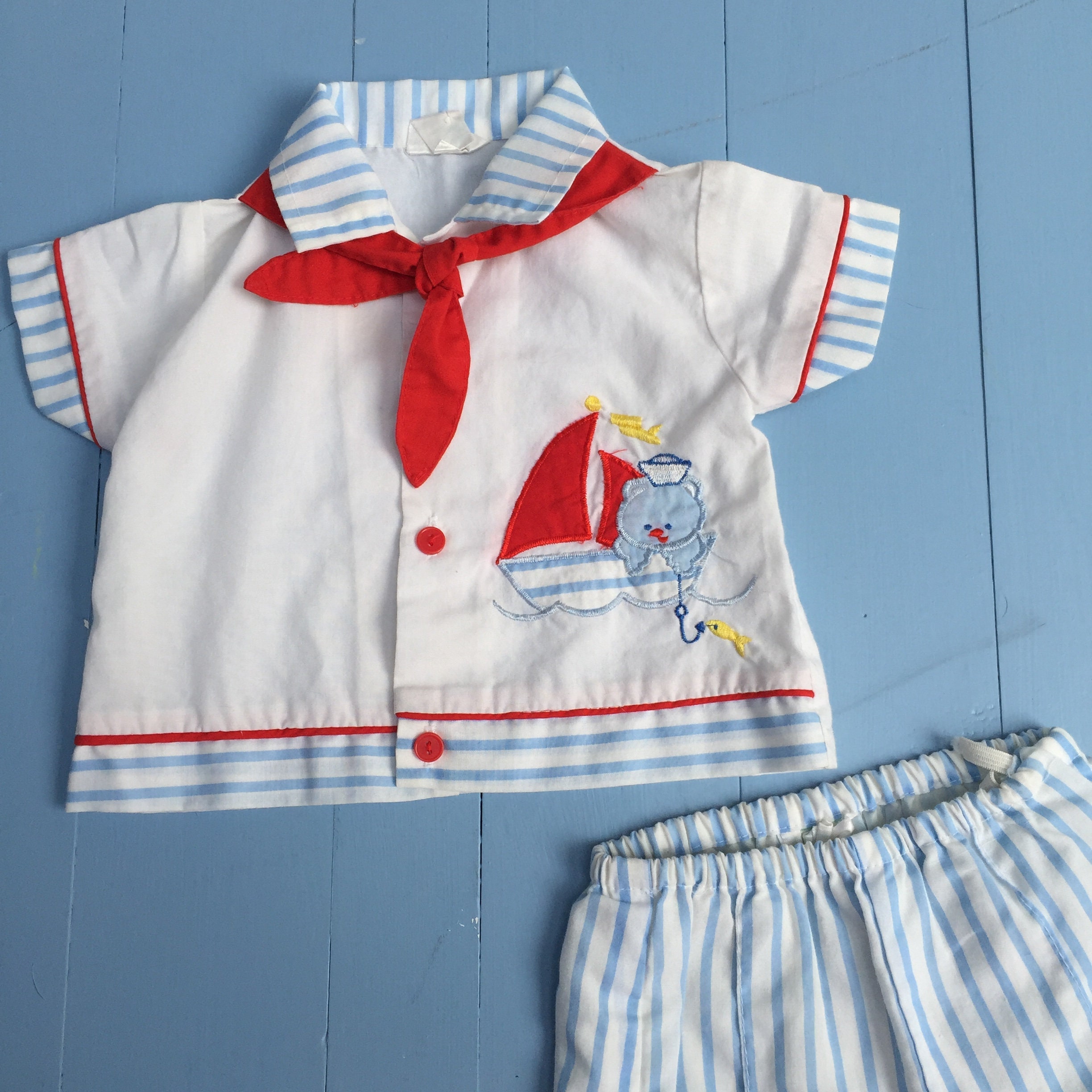 Vintage Baby Boy Sailor Outfit With Shoes Size 0 3 Months