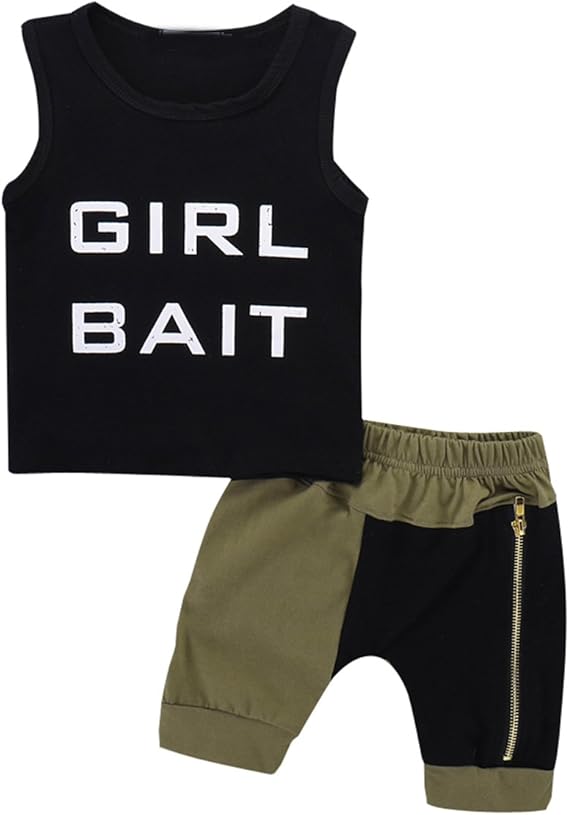 Camidy 2pcs Toddler Baby Boy Girl Bait Letters Vest Tops Pants