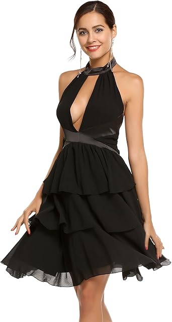 Acevog Women S Sexy Backless Tiered Summer Party Dress Halter Neck
