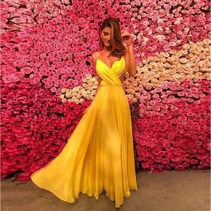 Fashion Spaghetti Strap Bohemian Evening Dresses Backless Pleat