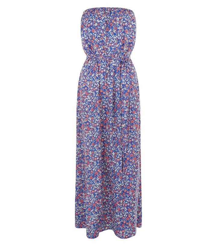 Blue Ditsy Floral Print Bandeau Maxi Dress New Look