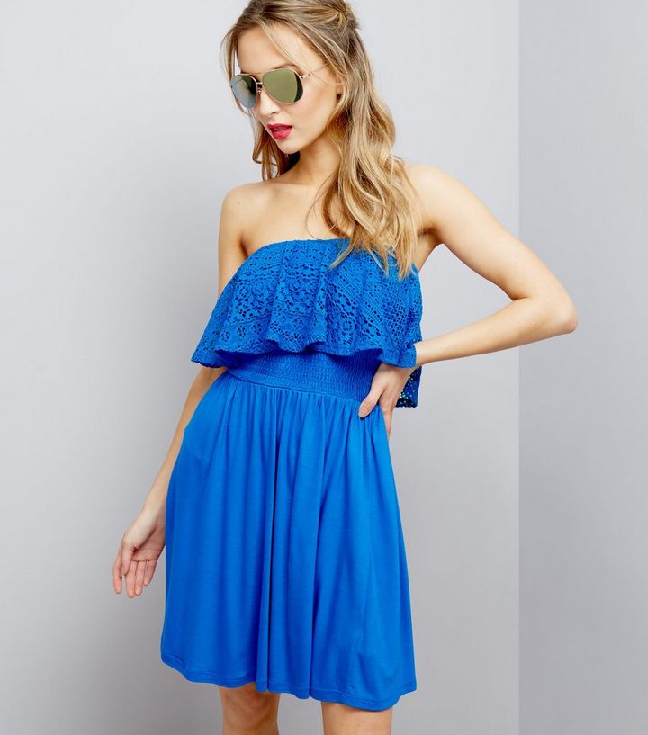 Blue Crochet Lace Bandeau Beach Dress New Look