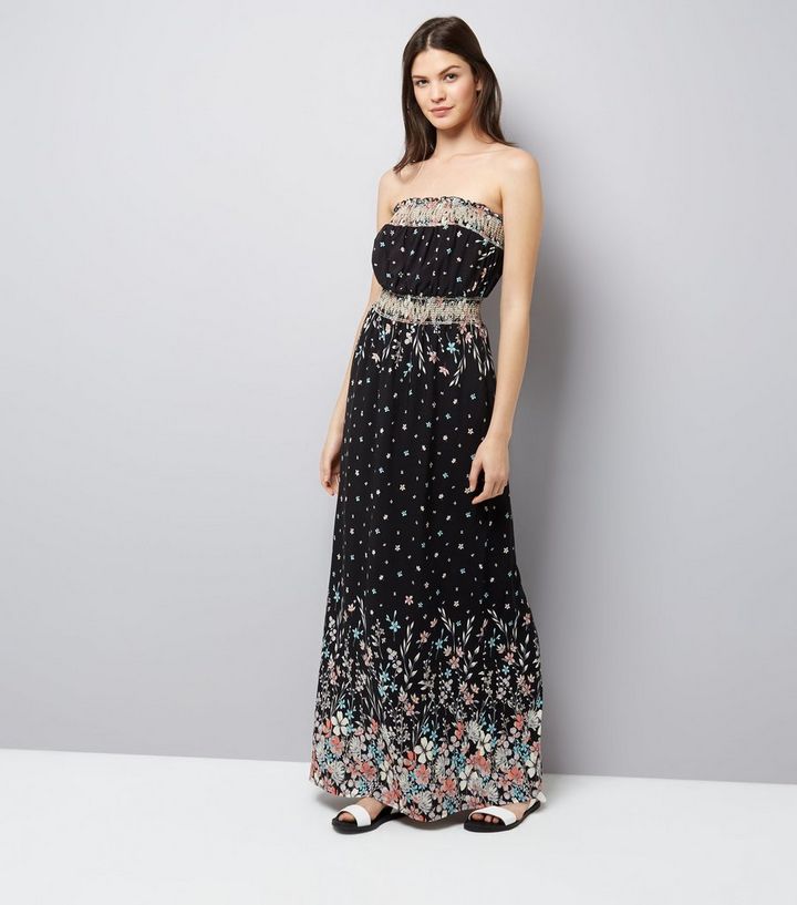 Black Fold Floral Bandeau Maxi Dress New Look Dresses247