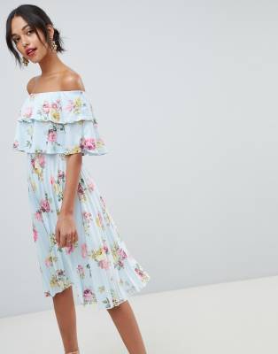Asos Bardot Midi Prom Dress With Beautiful Blue Florals At Asos