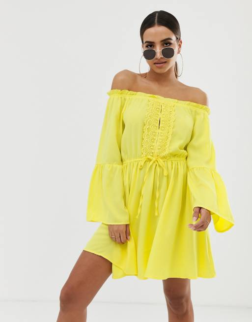 Boohoo Exclusive Lace Detail Bardot Summer Dress Asos