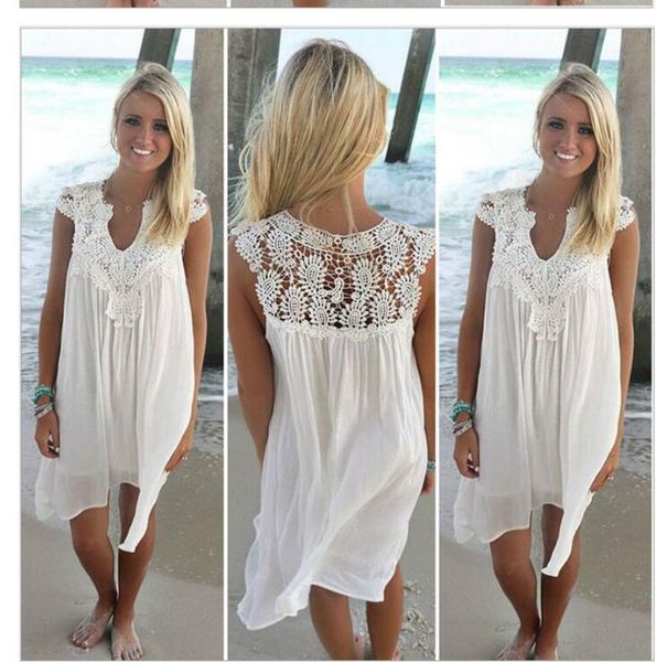 Women Summer Dresses White Lace Mini Dresses Casual Vintage Beach Sun