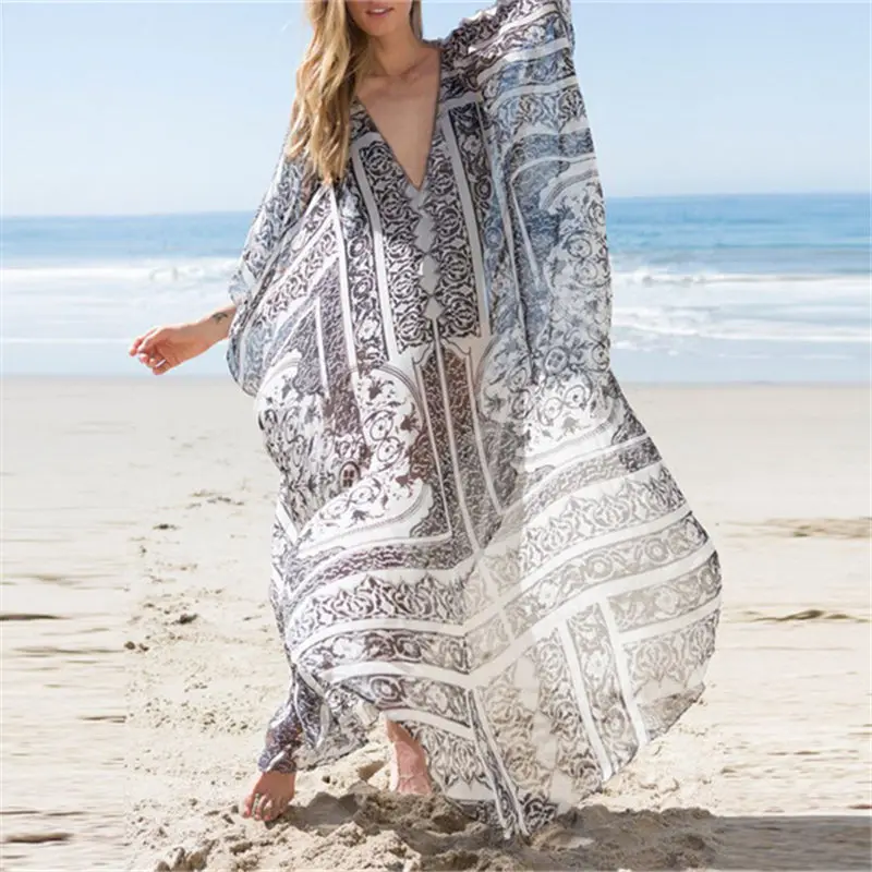 2020 Summer Bikini Cover Up Chiffon Swimsuit Beach Kaftan Dress