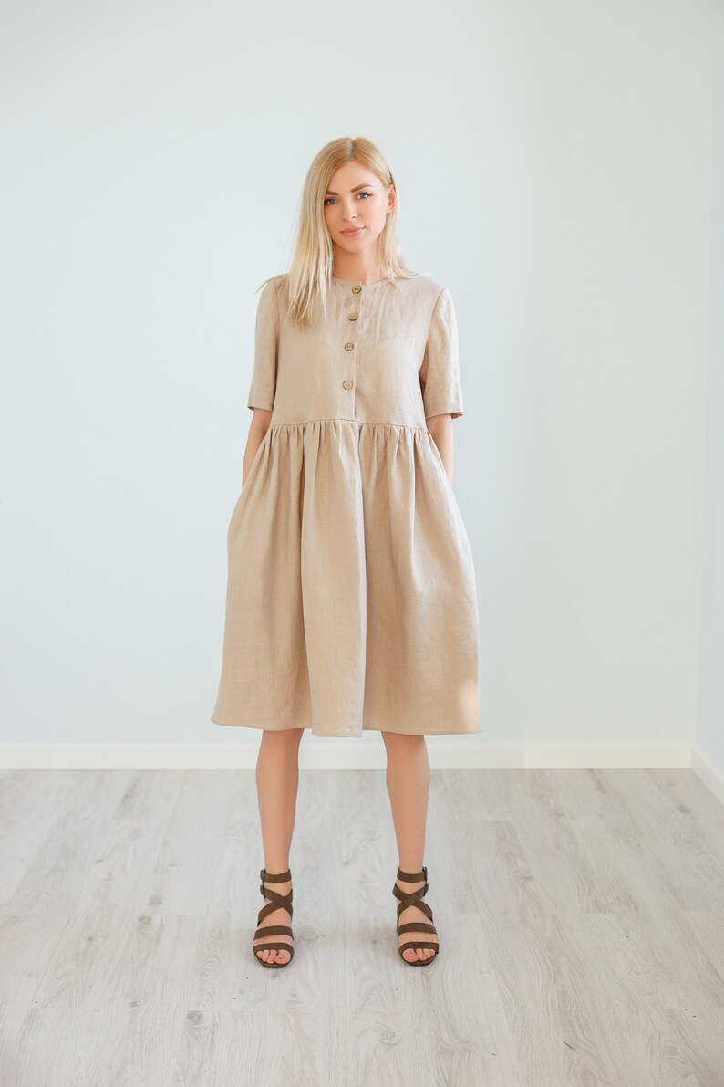Linen Dress Nica In Beige Maternity Dress Summer Linen Dress Etsy