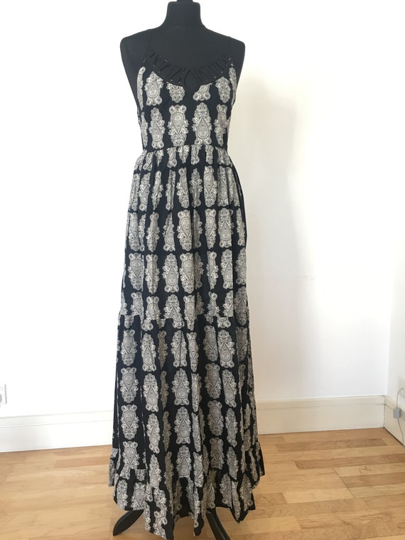 Long Black And White Print Dress Maxi Dress Cotton Summer Etsy