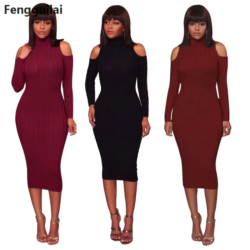 Street Style Solid Color Ribbed Knit Midi Knit Dress Spring Summer