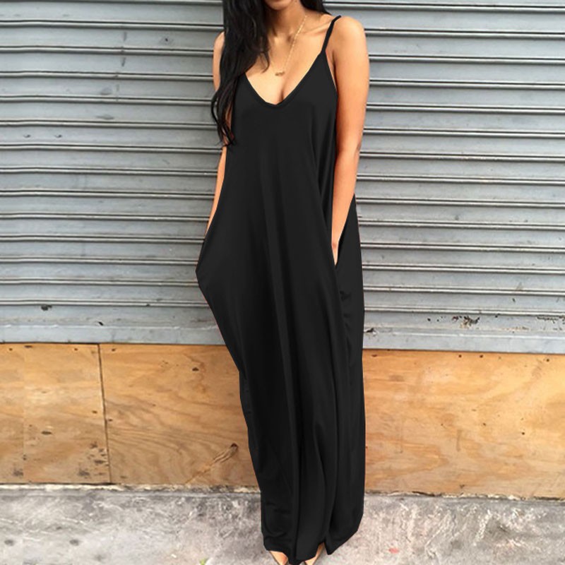 Sexy Spaghetti Strap Loose Summer Maxi Dress In Grey Black And