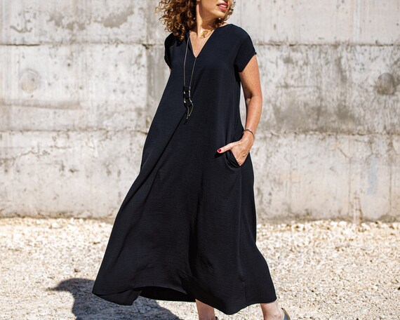 Maxi Dress Black Summer Maxi Dress Loose Fitting Dress Long Etsy