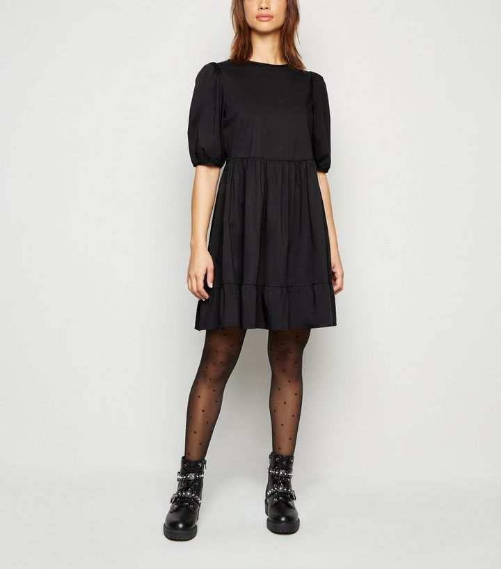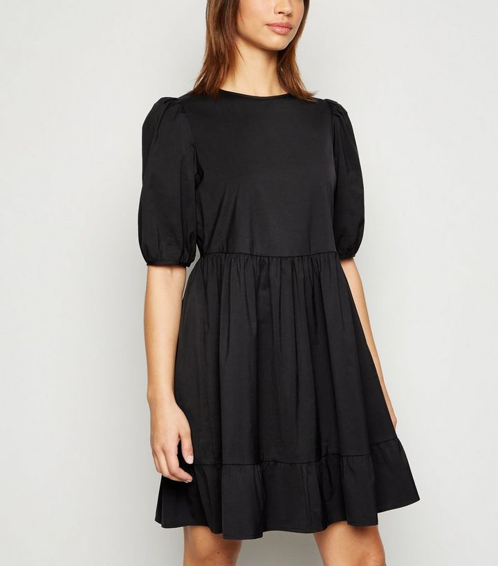 Black Daisy Floral Puff Sleeve Tiered Midi Dress New Look