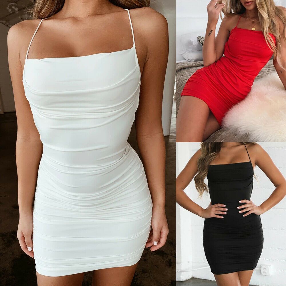 Cheap Women Summer Sexy Spaghetti Strap Backless Bodycon Mini