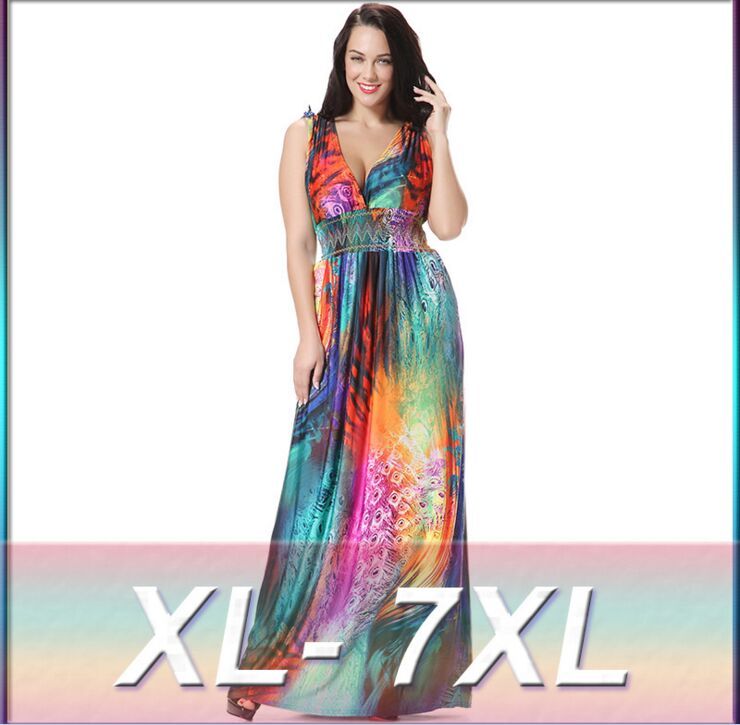 Plus Size Maxi Dresses Women S Large Size Summer Beach Tunic V