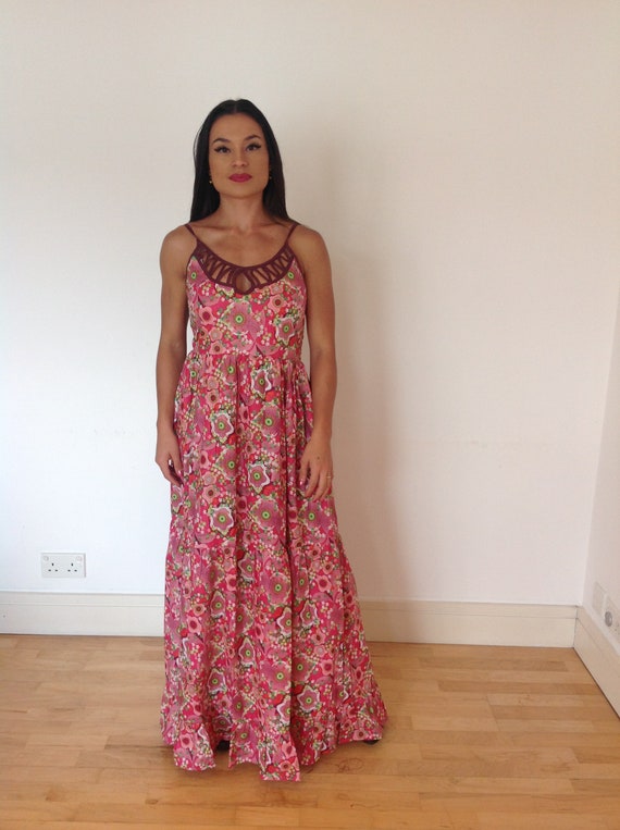 Long Pink Boho Print Dress Cotton Summer Dress Maxi Dress Etsy