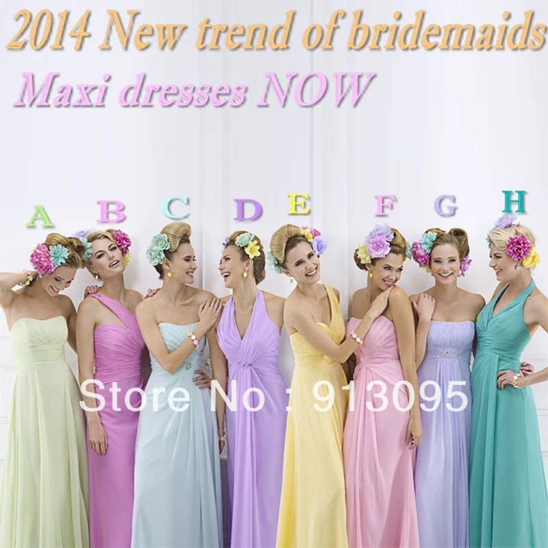 2015 Summer Style Chiffon Fabric Maxi Long Bridesmaid Dresses