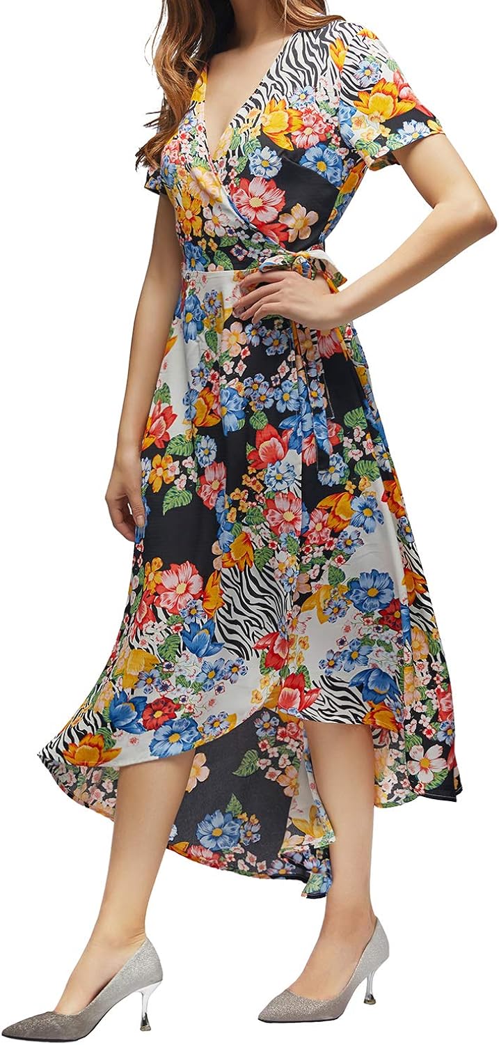 Vzuly Women S Floral High Low Maxi Wrap Dress Short Sleeve V Neck
