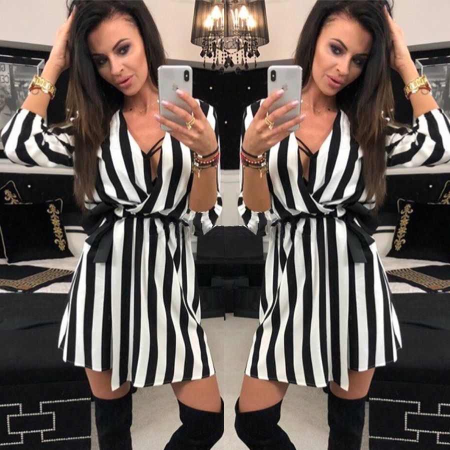 Summer Women Dresses Sexy V Neck Black White Dress Casual Short