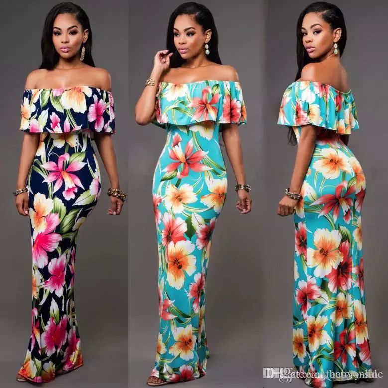 Cheap Summer Maxi Floral Printed Dresses Women Long Dresses 2017