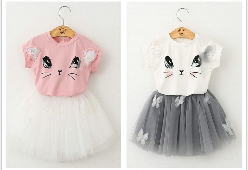 2020 Baby Girl Summer Clothes Sets Infant Toddler Girl Cartoon Cat