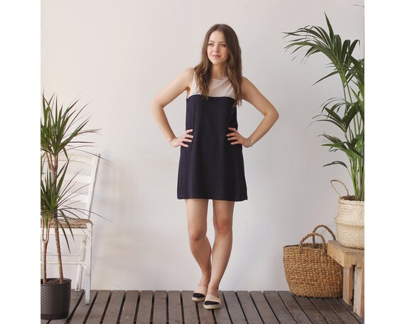 Mini Summer Dress Navy Colour Classic Short And Casual Etsy