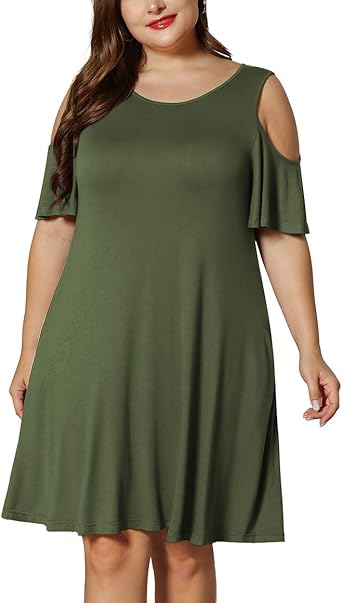 Nemidor Women S Cold Shoulder Plus Size Casual T Shirt Swing Dress