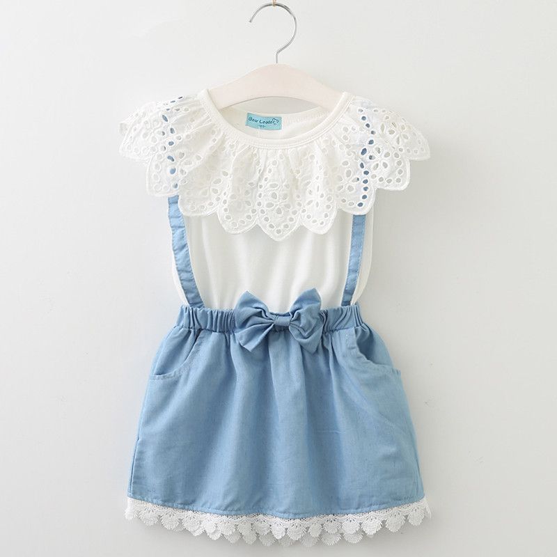 2020 Girls Denim Summer Dresses Suspenders Girls Cute White