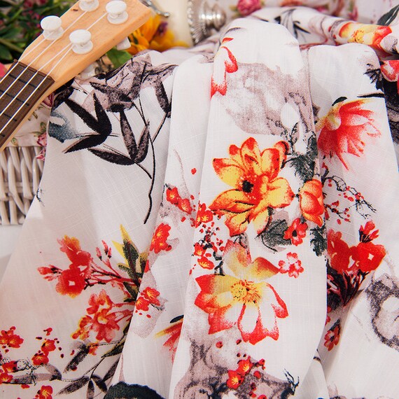Floral Print Cotton Fabric Summer Linen Cotton Fabric Soft Etsy