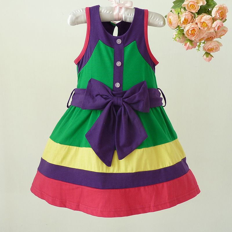 2020 Girl Cotton Dress Contrast Color Jumper Skirt Kid Clothes