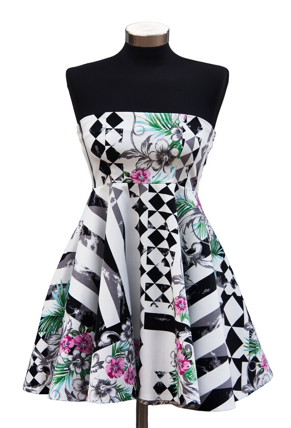 Flowered Cotton Cocktail Dress Prom Dress Summer Evening Etsy
