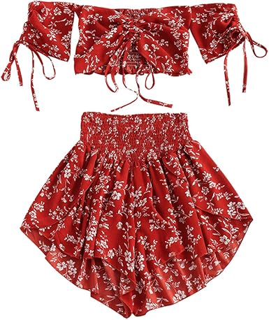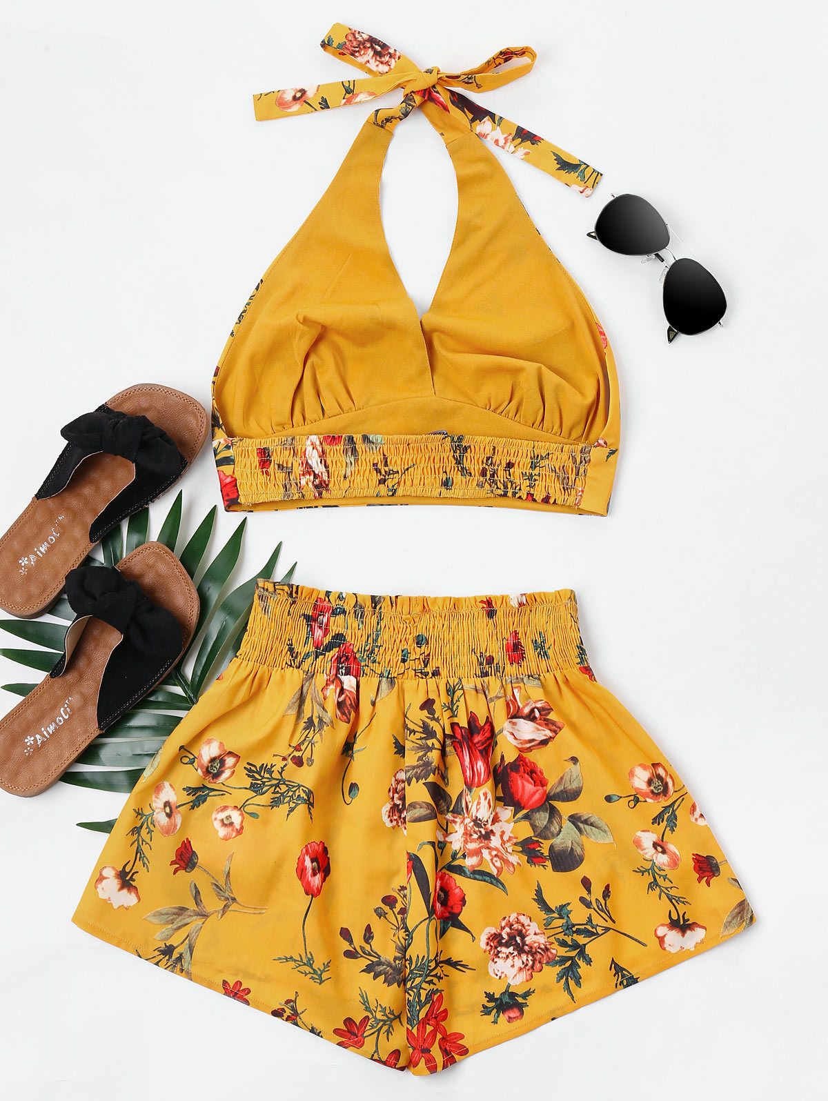 2020 Zaful Women Set Summer Semi Sleeveless Floral Crop Top