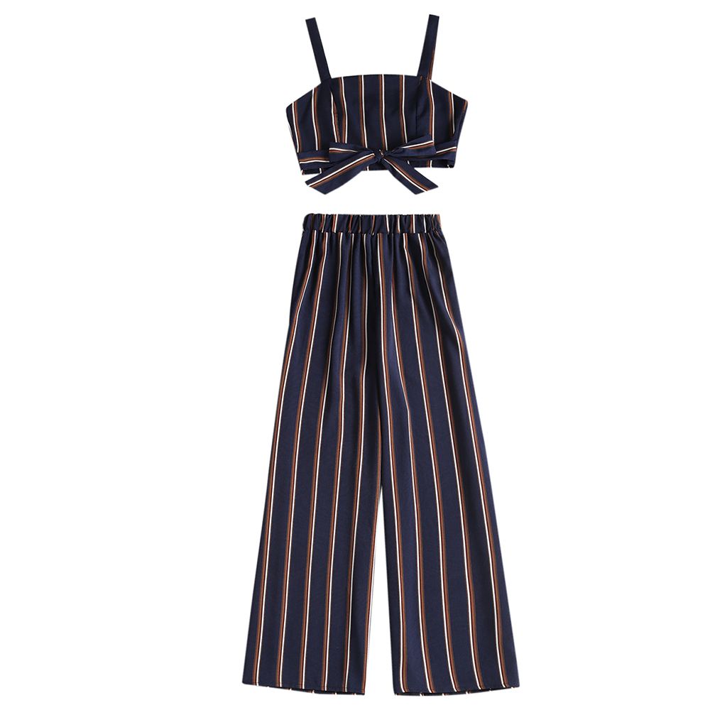 2020 Zaful Striped Summer Women Sets Spaghetti Straps Square Neck