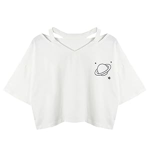 Amazon Com Women Teen Girls Cute Planet Print Summer Cut Out