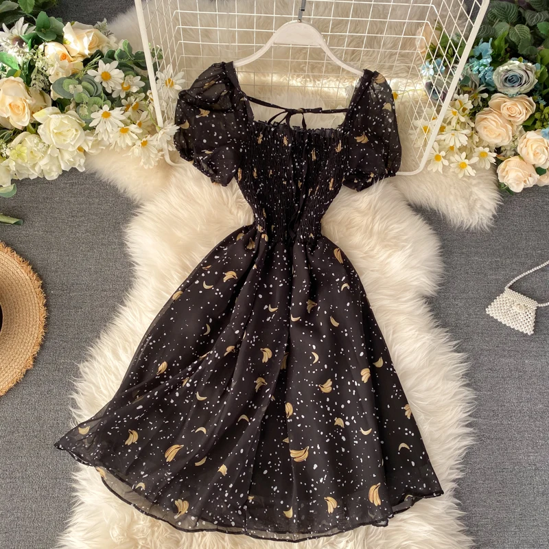 Puff Sleeve Dress Black Vintage Floral Dress Kawaii Cute Summer