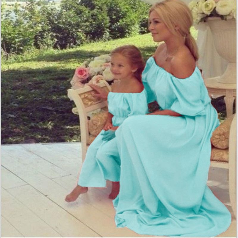 Summer Matching Mother And Baby Solid Dresses Outfits