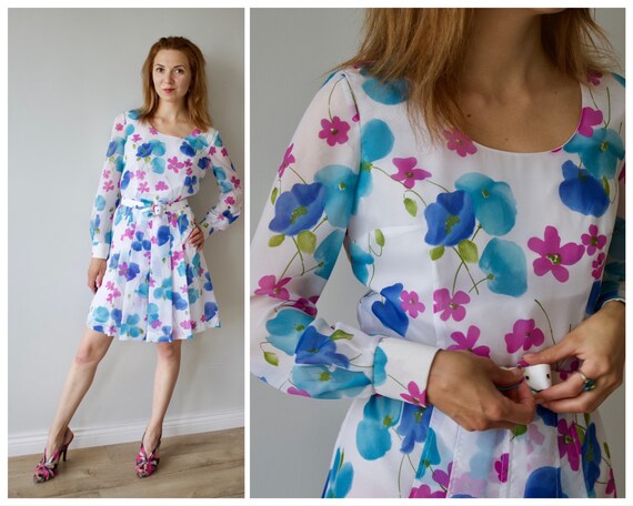 Vintage White Floral Dress Cute Summer Dress Belted Dress Etsy