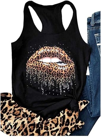 Gowone Women Sequined Sparkely Glittery Leopard Print Lip Shirt