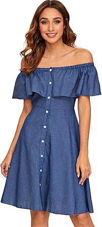 Women S Off Shoulder A Line Summer Dress Front Buttons And