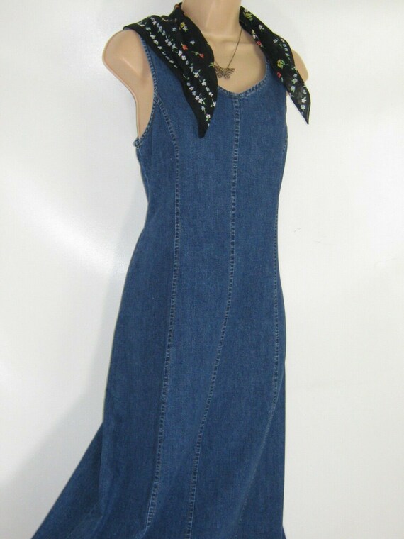 Laura Ashley Vintage Country Denim Summer Maxi Dress Uk12 Etsy