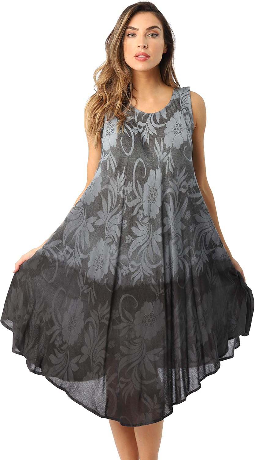 Riviera Sun Ombre Tie Dye Summer Dress With Floral Painted Design
