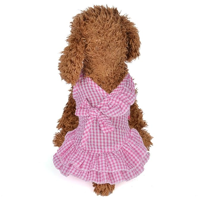 Fudule Pet Clothes Cute Cat Dogs Summer Lattice Sling Vest Dress