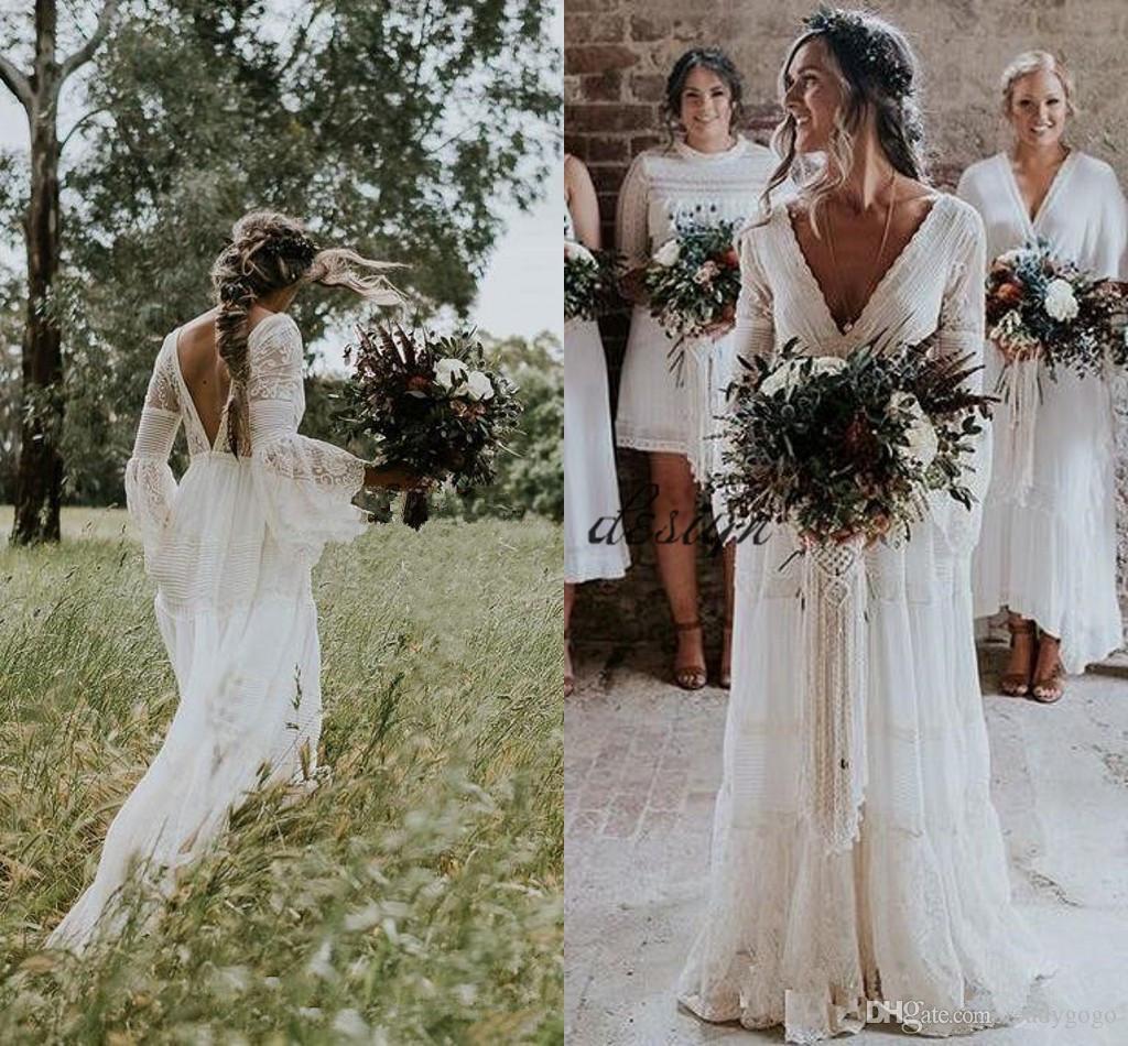 Discount Gwendolyn Country Wedding Dresses 2019 V Neck Crochet